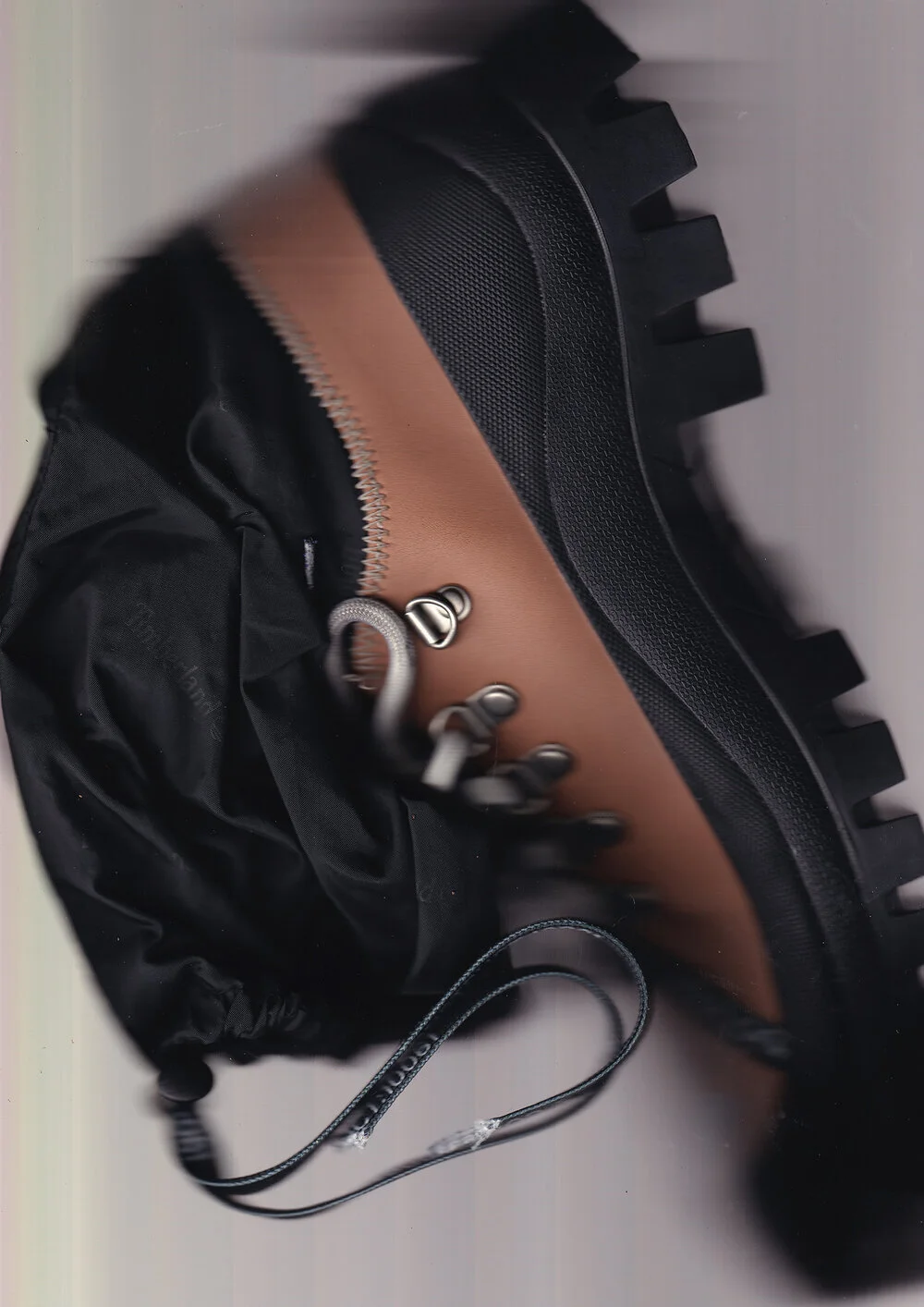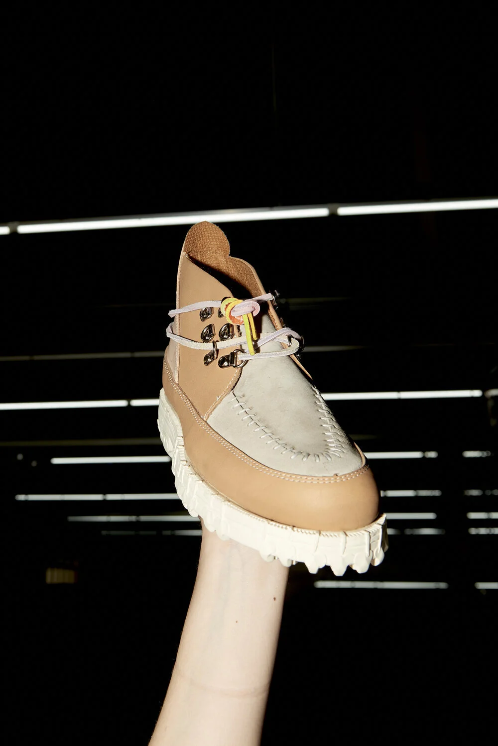 Upper: Vegetable Tanned Leather, Recycled tent fabric