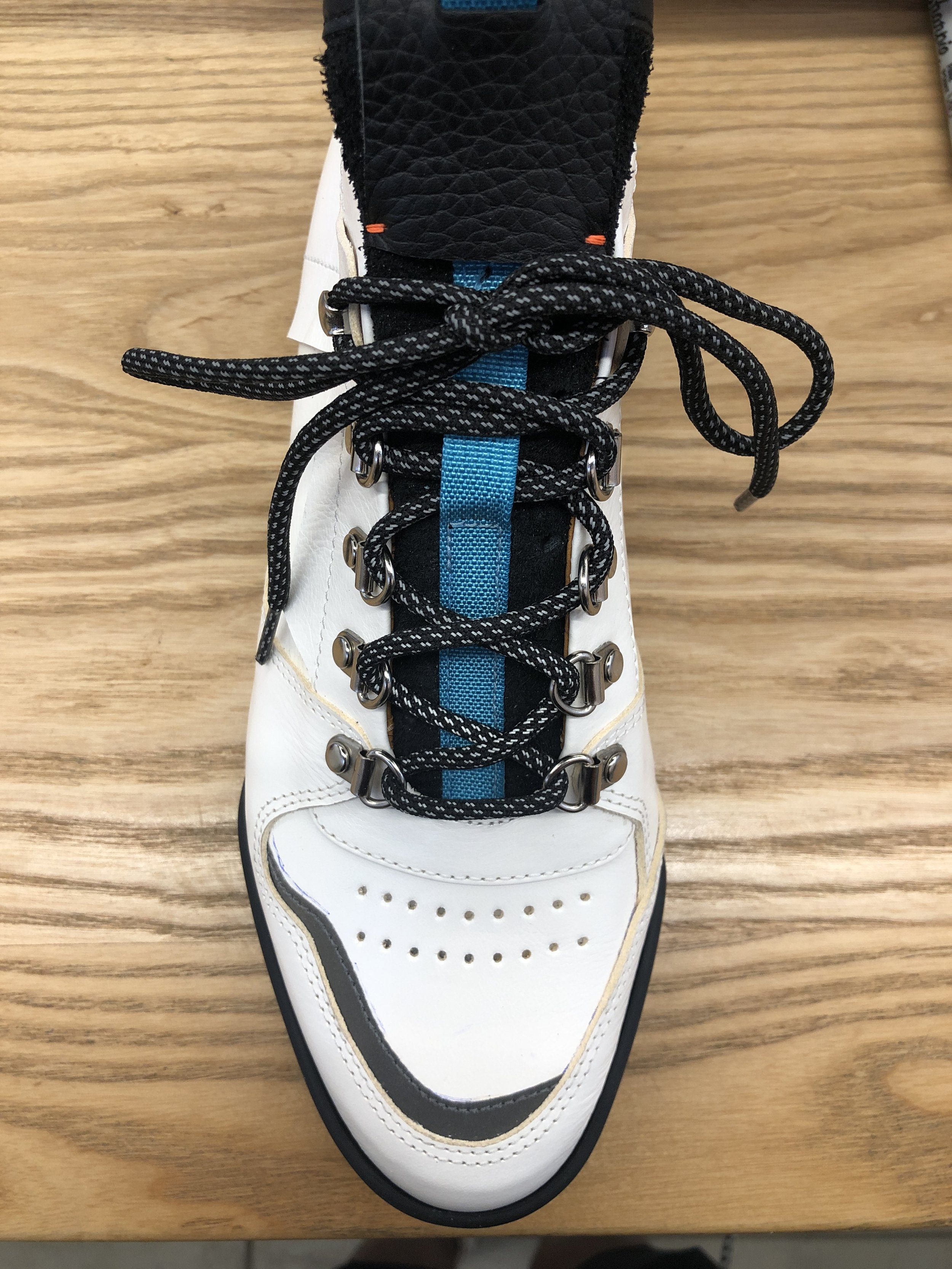 Product Specifications: Italian pebbled leather sourced from French tannery Remy Carriat that's mineral tanned and hand-polished. Hand-lasted asymmetrical panels make up the upper and are complemented with orange contrast stitching, UV printed type accents, and French Plonge lambskin lining.